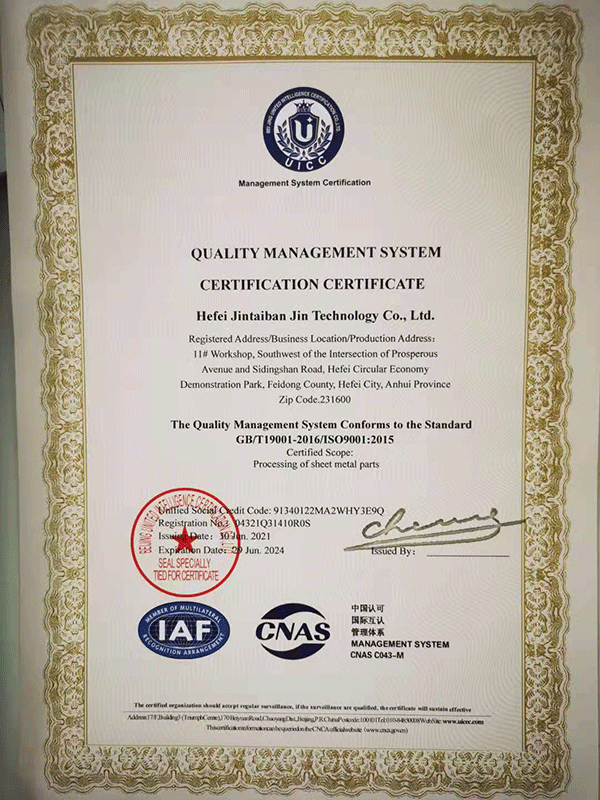 合肥金泰鈑金科技有限公司,專業從事精密鈑金件加工的新技術股份制企業,主要承接各類鈑金加工、激光切割、沖壓件、機箱機柜、設備外殼、不銹鋼產品的精密鈑金加工制作。